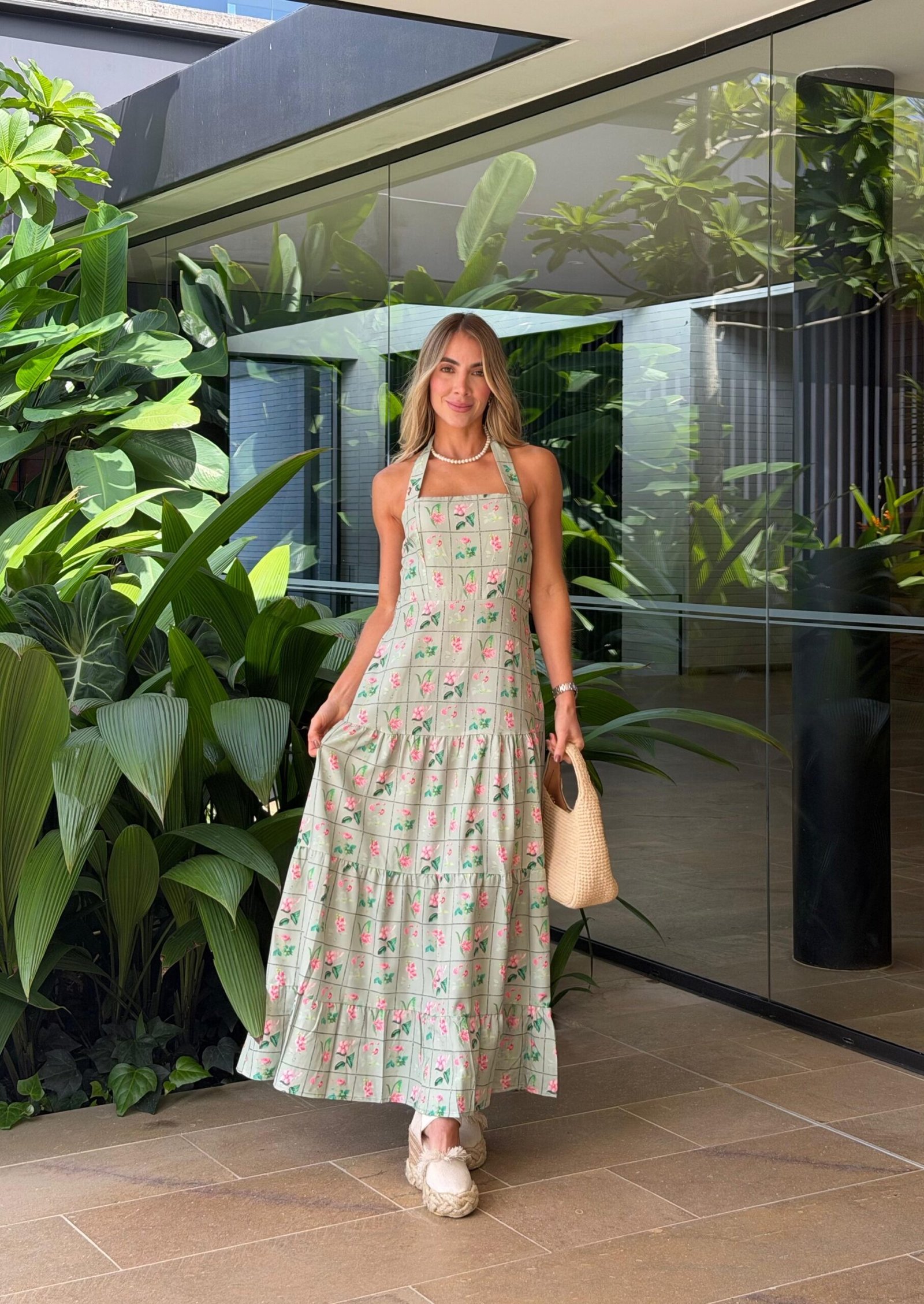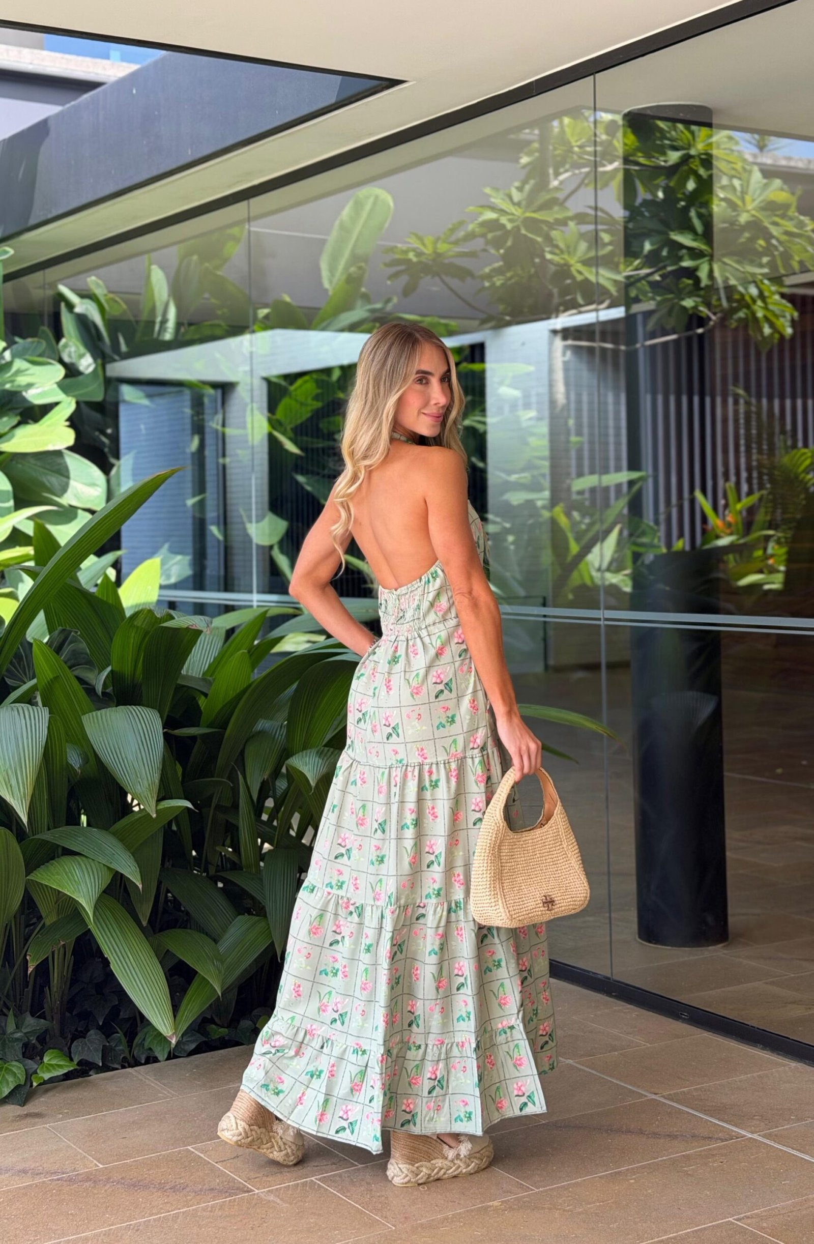 Vestido largo con resorte en la espalda.